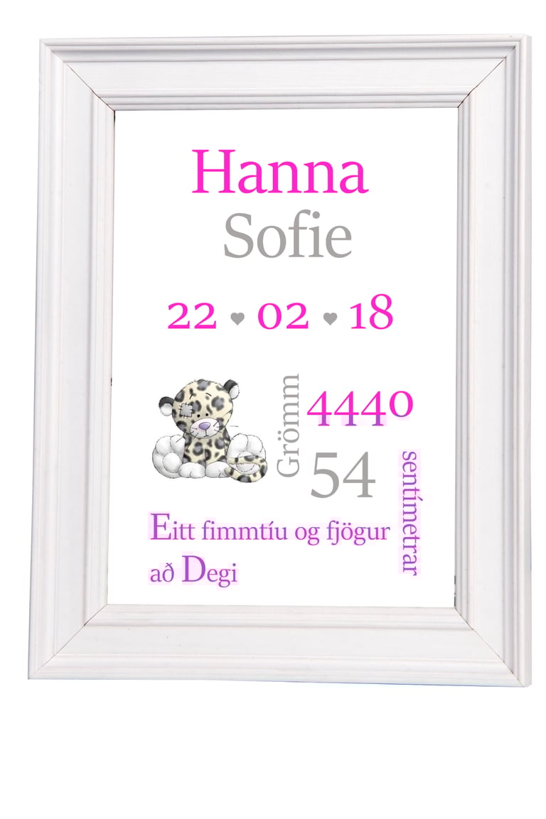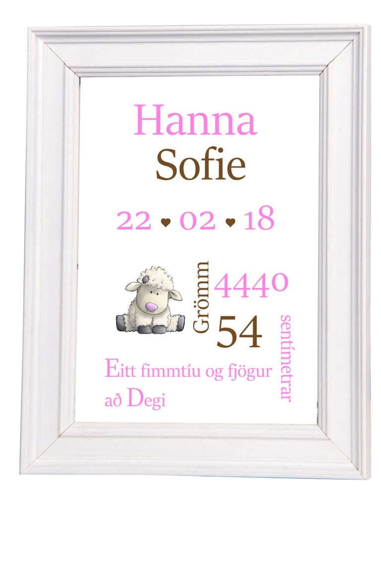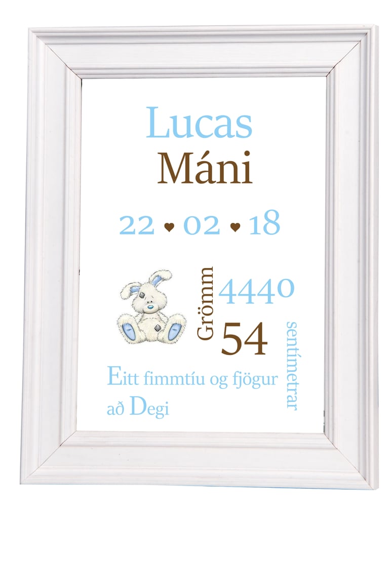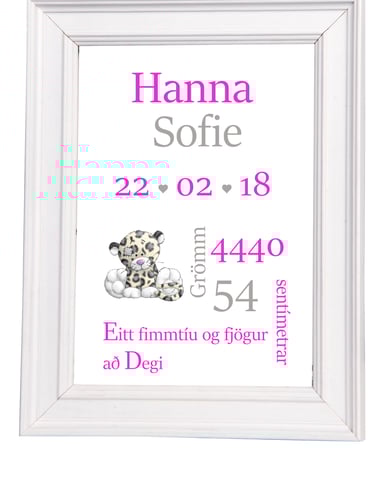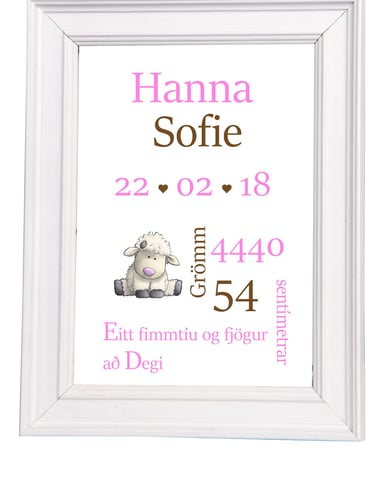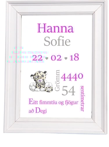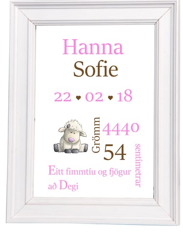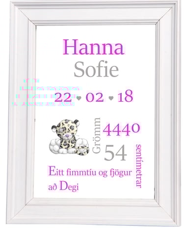 Nafnaspjöld – með nafni barns, fæðingardegi og helstu upplýsingum