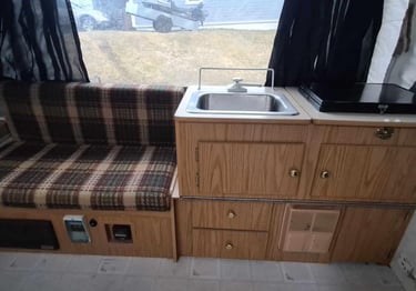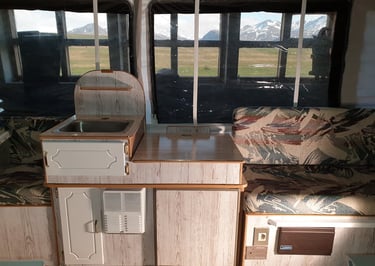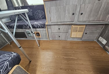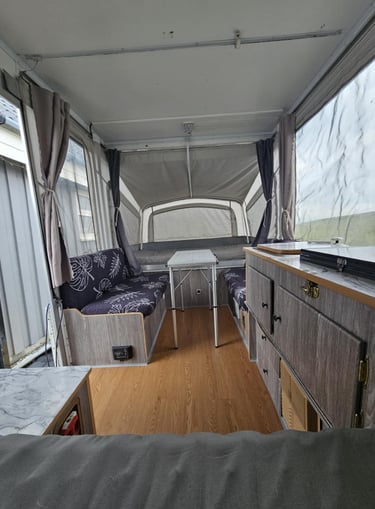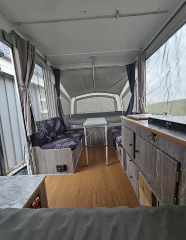 Að sjálfsögðu lögðum við líka mikla vinnu í að þrífa, pússa og betrumbæta hvert horn. Smáatriðin skipta máli – og saman skilaði þetta ótrúlegri umbreytingu, sem gerði þetta gamla og vel notaða fellihýsi að miklu huggulegra hýsi sem er notarlegt að eyða útilegunum í.